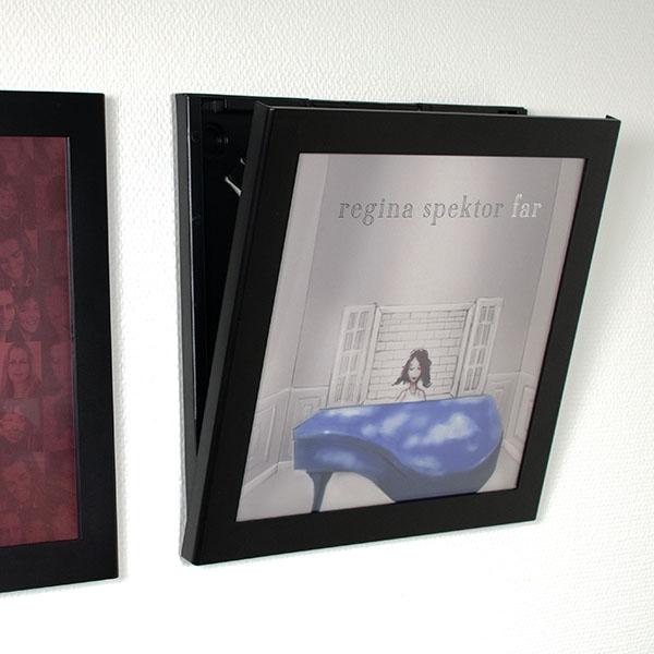 Under många år var omslagen till skivor nästan lika viktiga som musiken och i många fall är de ju som konstverk i sig. Med LP-ramen Show and Listen kan du visa upp dina favoritskivor samtidigt som du enkelt kan ta fram och spela skivan. Show and Listen är en ram som enkelt kan öppnas. Ramen är konstruerad för att hantera hela LPn, komplett med skivor och allt. I varje hörn sitter det en fjädrande tunga som trycker fodralet mot den genomskinliga plastskivan och ser därmed till att fodralet sitter bra oavsett om det är en vanlig tunn LP, en 180g skiva eller ett gatefold-fodral med dubbla 180g skivor. |